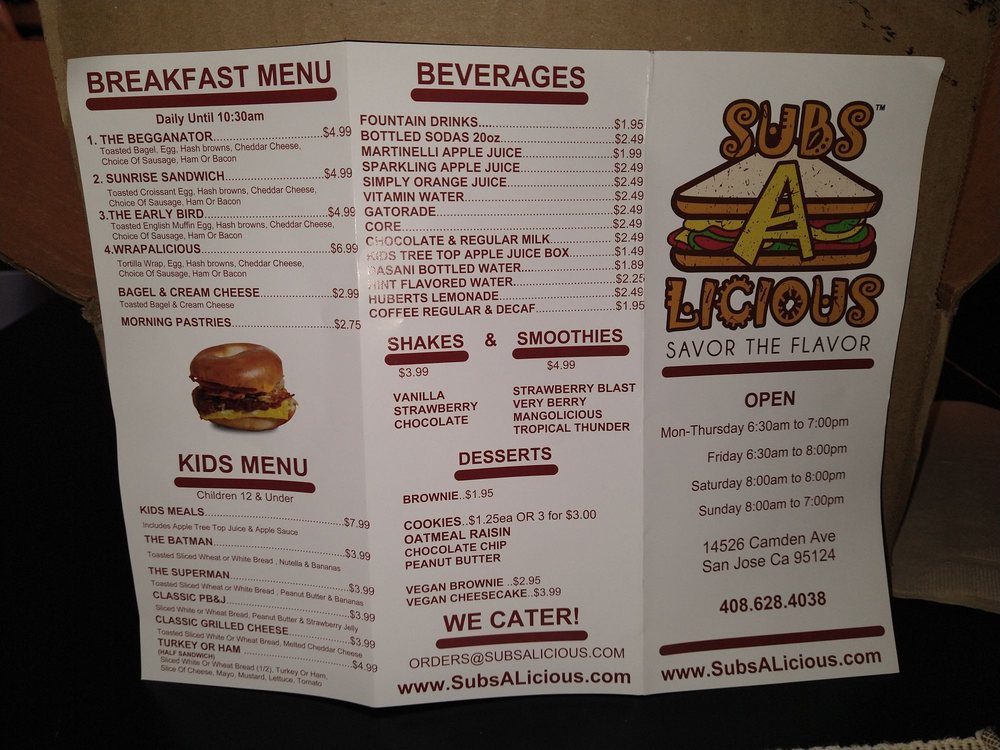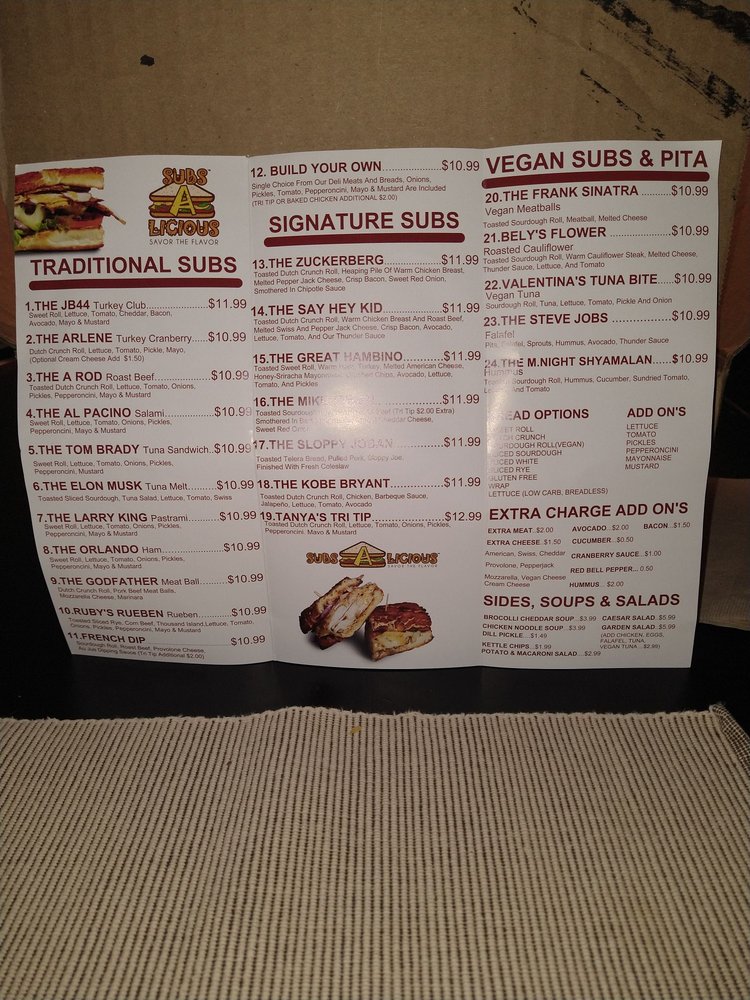 Subs A Licious Menu
